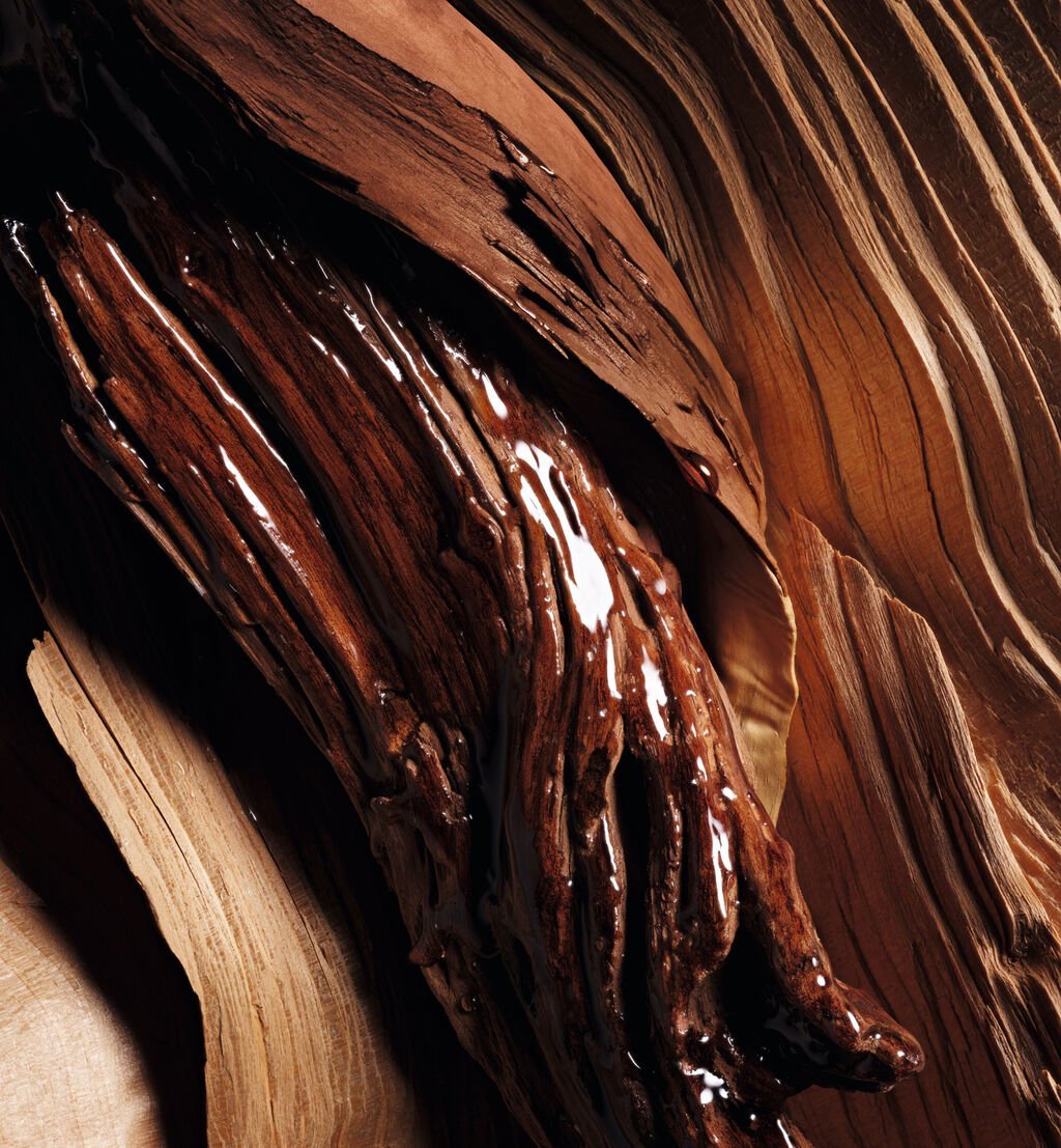 Oud Rosewood eau de parfum embodies a complex patterned silhouette: a jacquard weave, like the fabric of the iconic Dior Oblique motif.